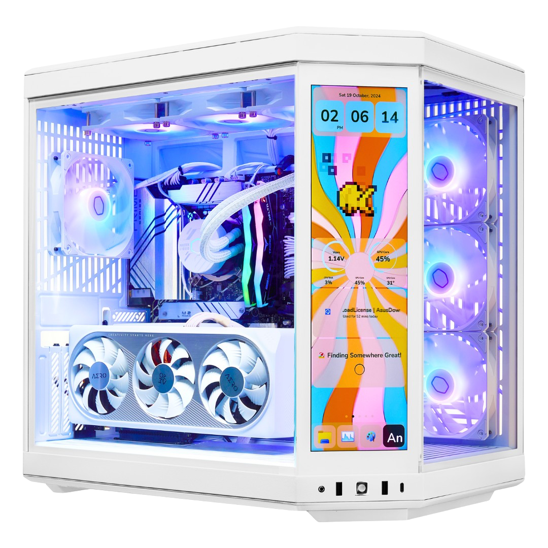 Introducing our exclusive Frozen Series, meticulously engineered to deliver unparralleled airflow and stunning aesthetics. This premium series includes ten Lian Li uni fans, 2 Lian Li Strimers and a LCD display setting a new standard for perfomance and design.